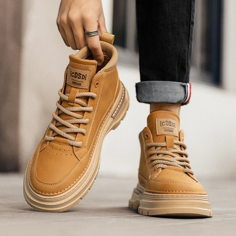 秋冬真皮厚底大頭短靴復(fù)古高幫大黃靴 內(nèi)增高馬丁靴女靴子2025新款