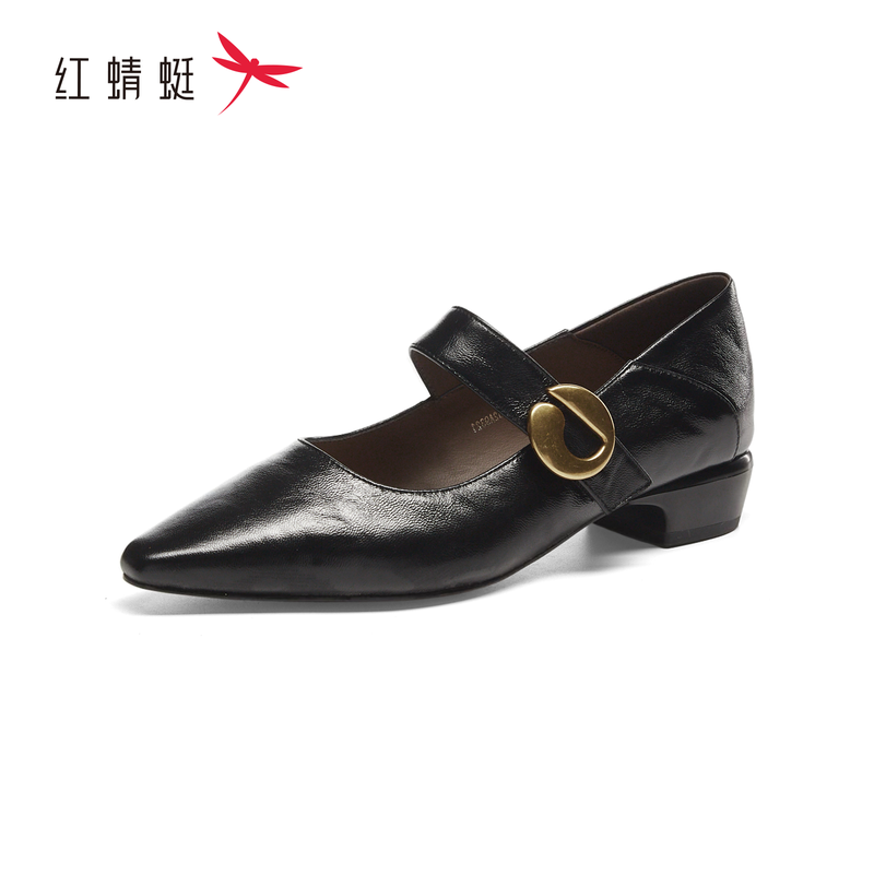 BQ63001011粗跟尖頭BQ63001012淺口 紅蜻蜓2025女士瑪麗珍羊皮單鞋由