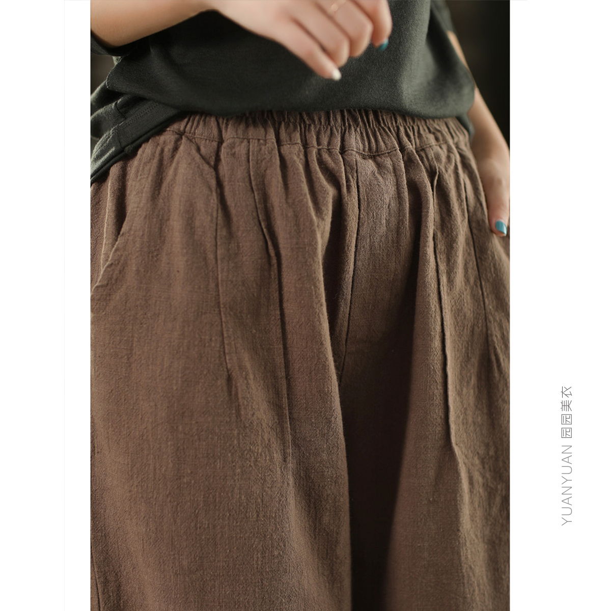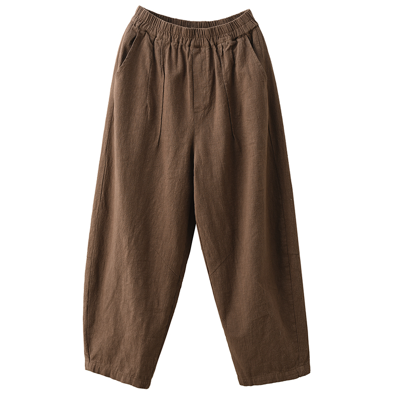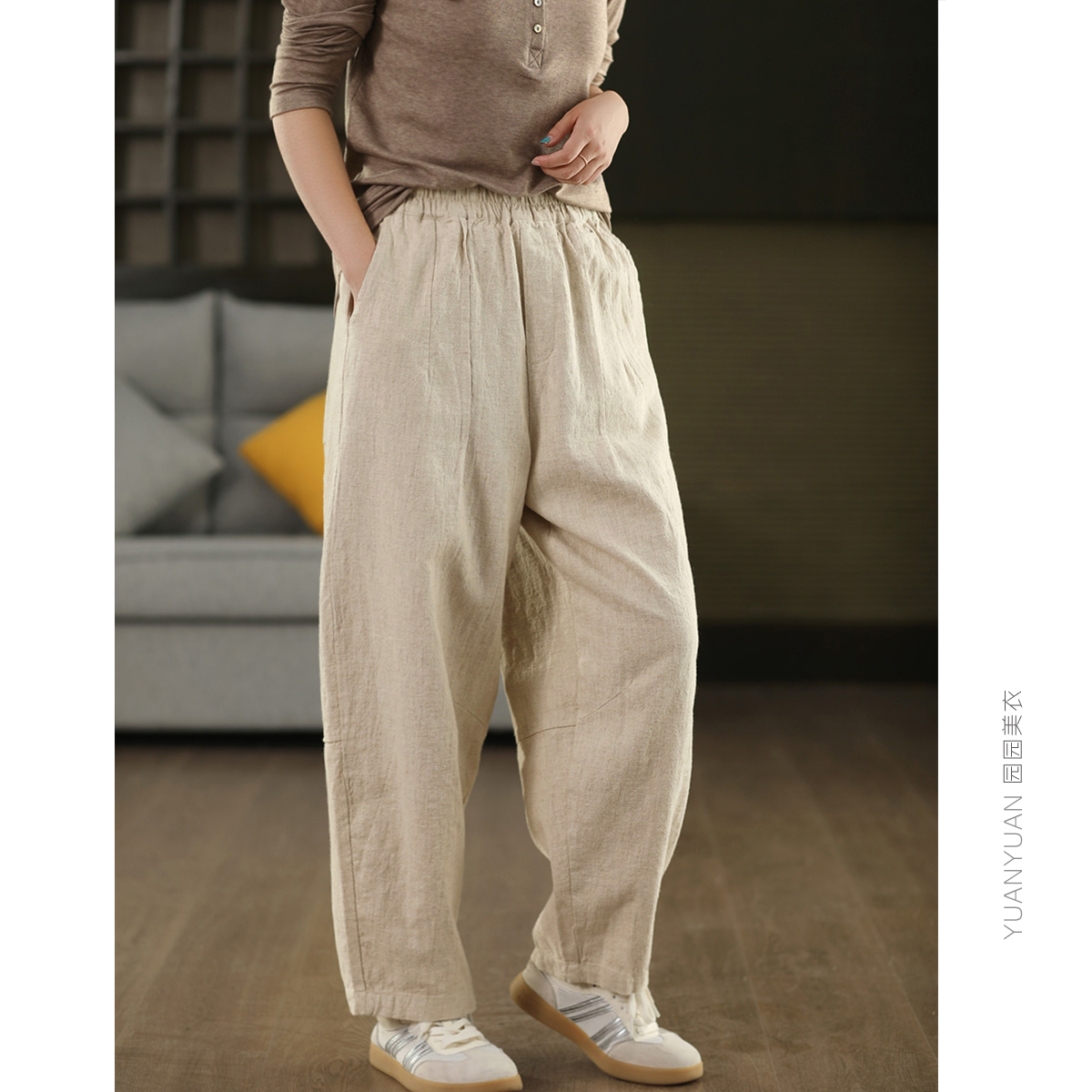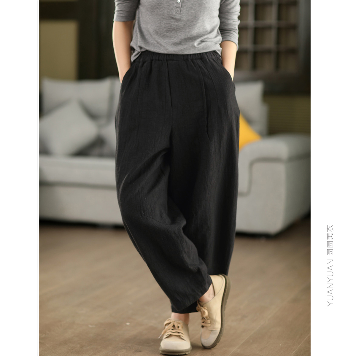 寬松長褲 秋 女全棉內(nèi)里顯瘦哈倫褲 園園美衣復(fù)古砂洗雙層亞麻休閑褲由