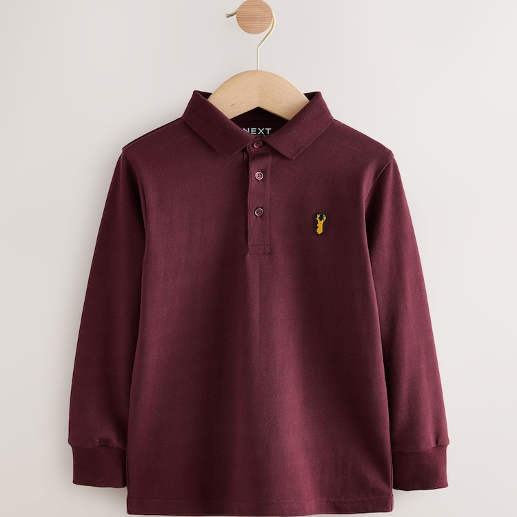翻領POLO衫 上衣 25秋新男童大男孩純色馴鹿刺繡長袖 英國NEXT童裝由