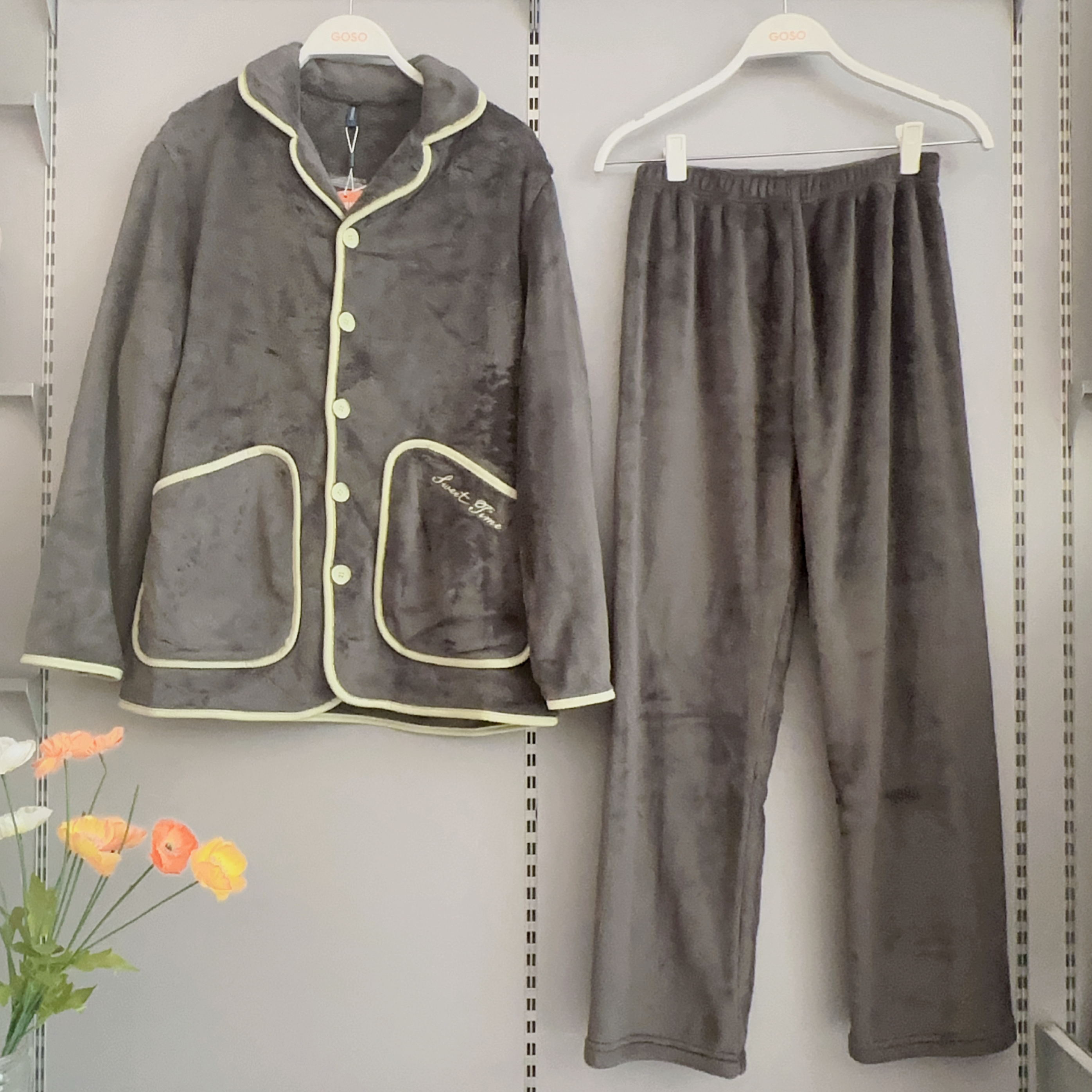 新款 yso 花花夢園 睡衣女冬季 半邊絨刺繡ins家居服套裝