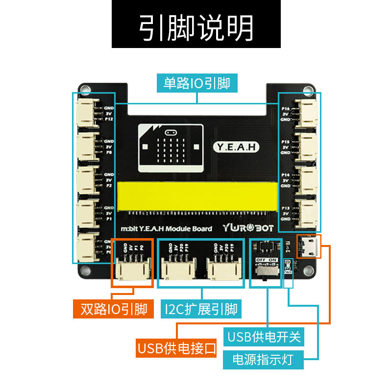 適用于Microbit擴(kuò)展板IO擴(kuò)展板防反接PH2.0圖形化編程 YwRobot由