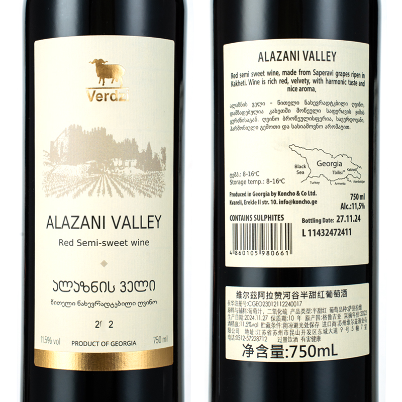 原瓶進(jìn)口熱微醺紅葡萄酒 格魯吉亞紅酒維爾茲阿拉贊河谷半甜型原裝由