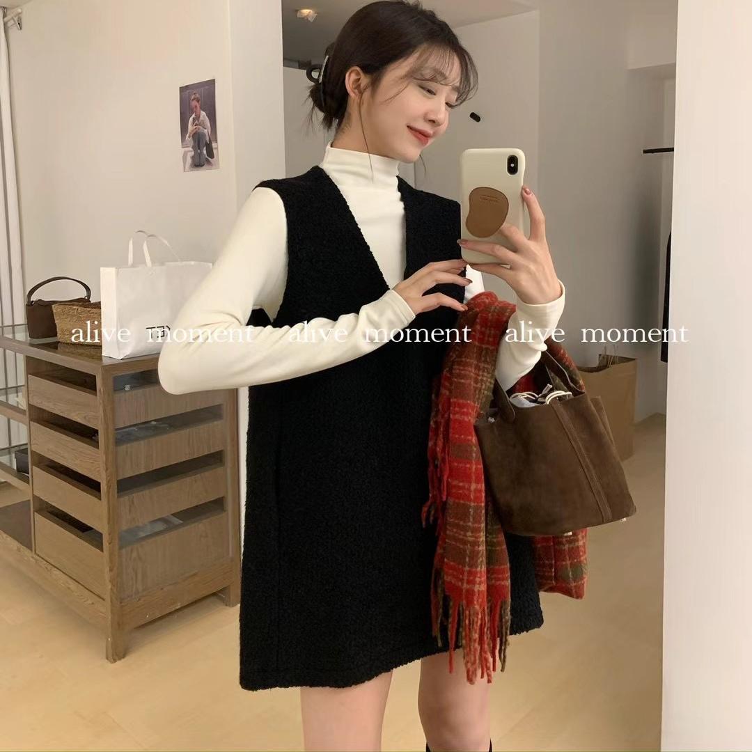alive 2024冬季 時尚 67%羊毛背心裙女氣質顯瘦V領連衣裙 moment由