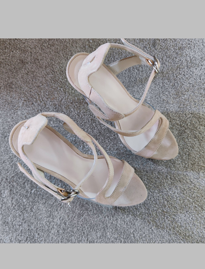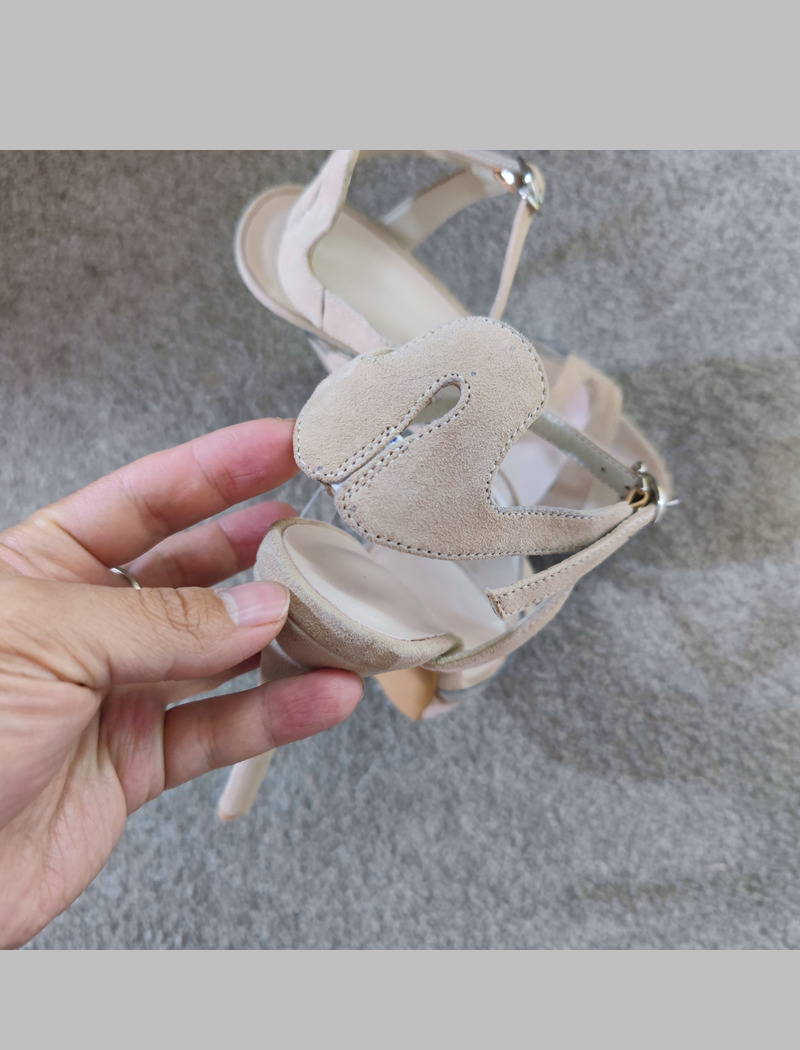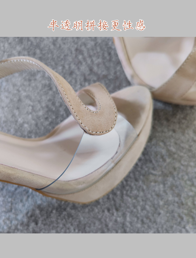 13CM防水臺裸粉反絨透明高跟涼鞋 走秀時裝 鞋 氣質名媛女 性感夏季由