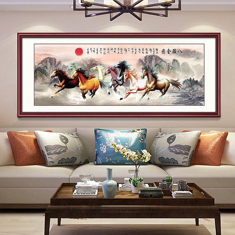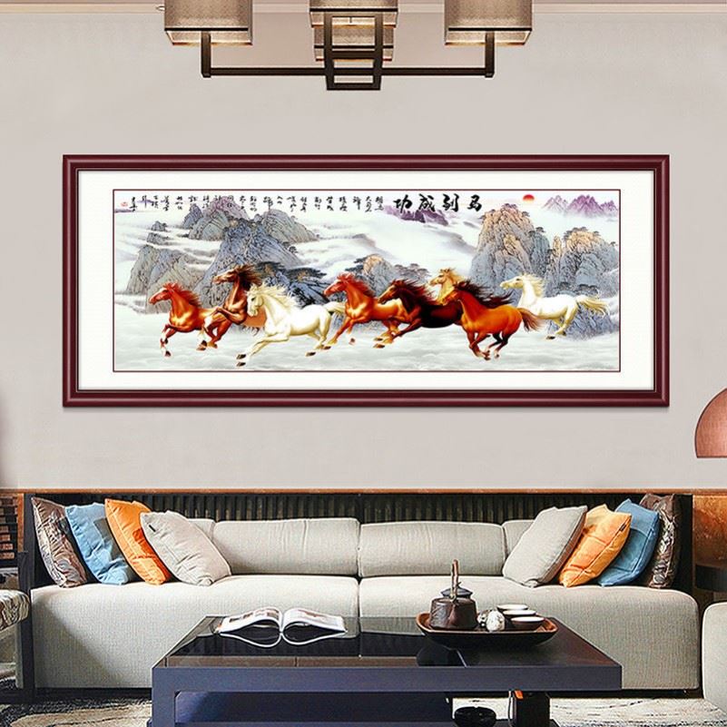 新款 飾畫(huà)沙發(fā)背后八馬圖國(guó)畫(huà) 馬到成功客廳辦公室背景字畫(huà)八駿圖裝由