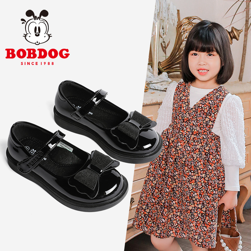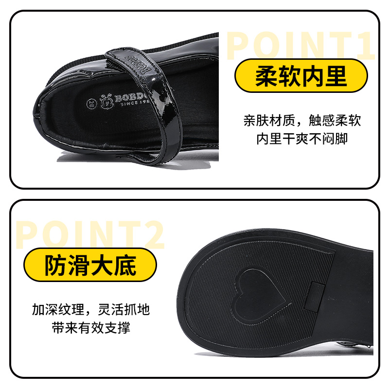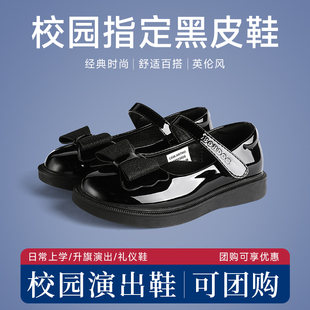 兒童鞋 巴布豆旗艦店官方女童黑色皮鞋 子 四季 鞋 演出2025新款 春款由