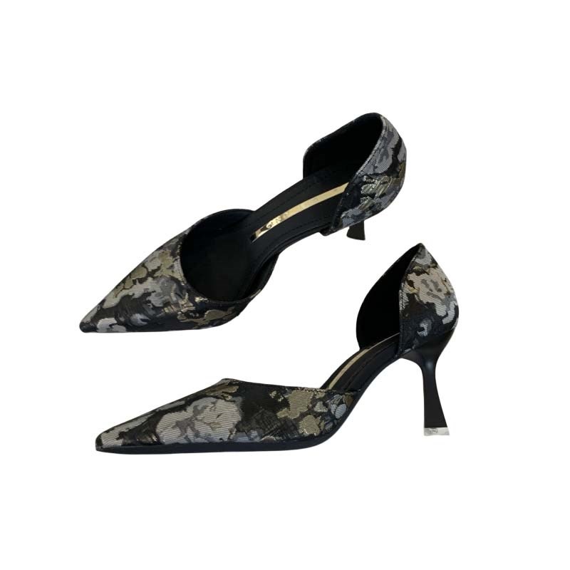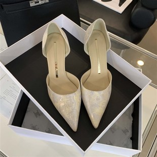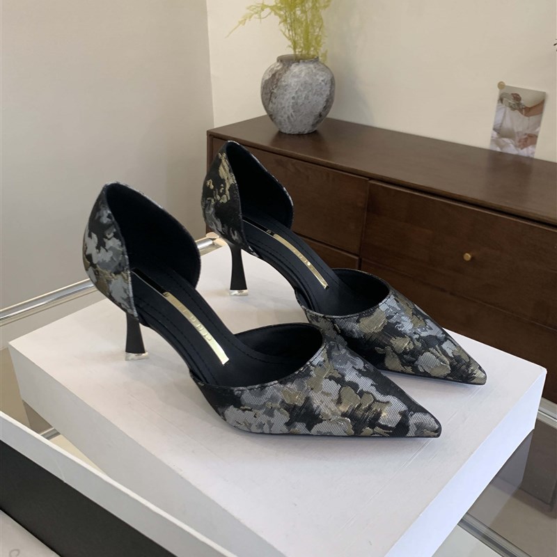 清冷中式 2024年新款 印花尖頭細跟溫柔氣質單鞋 女 風中空高跟鞋由