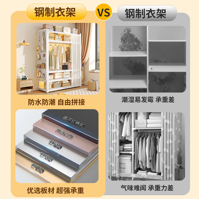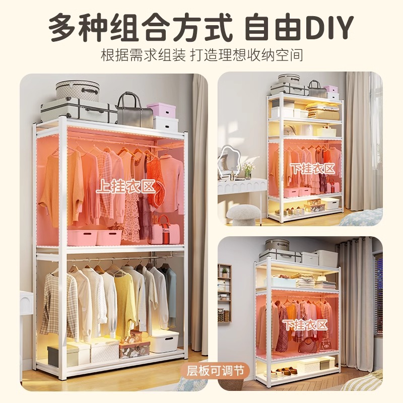 簡易衣櫥衣柜衣帽架 家用貨架衣柜雙層掛衣架鋼制衣架收納架開放式由