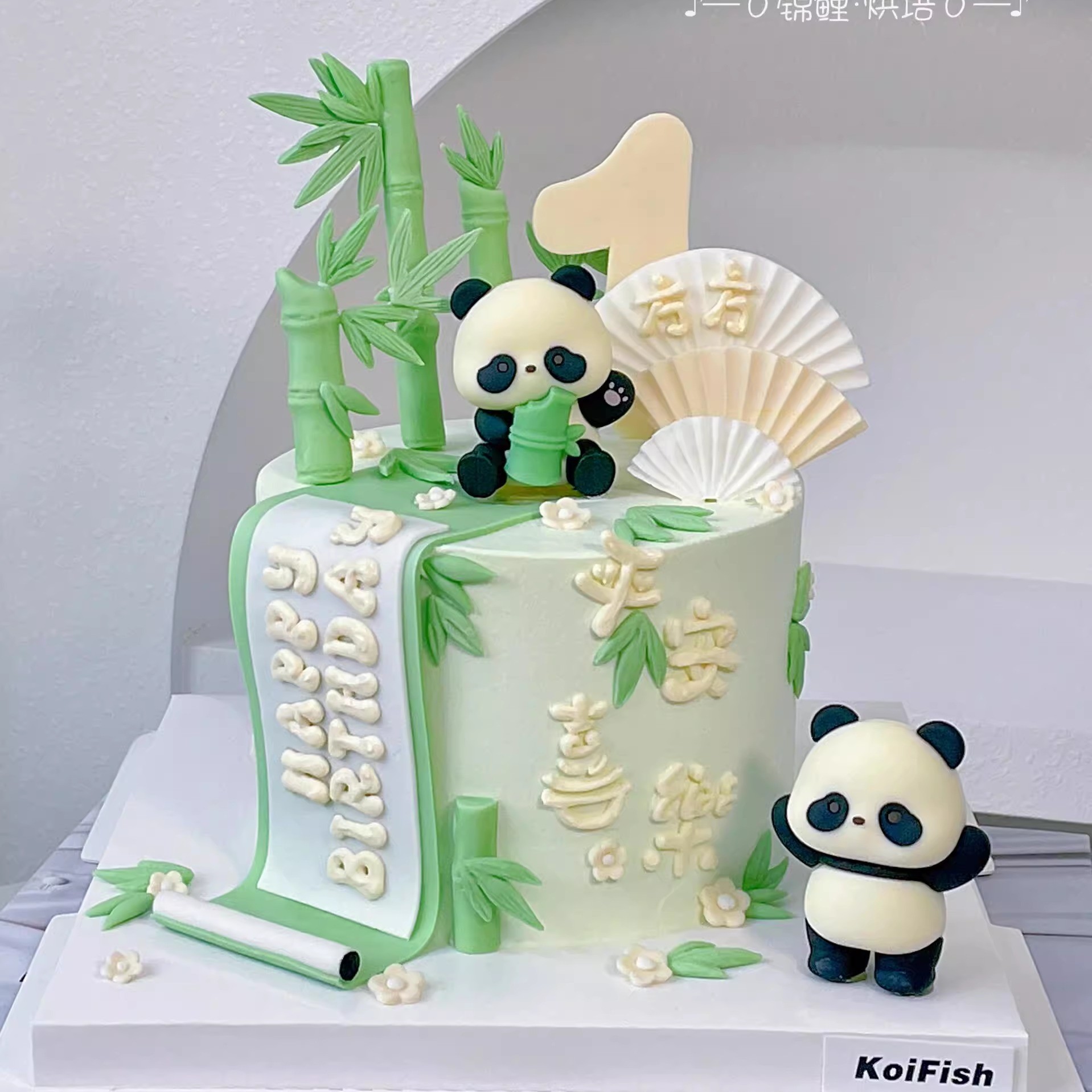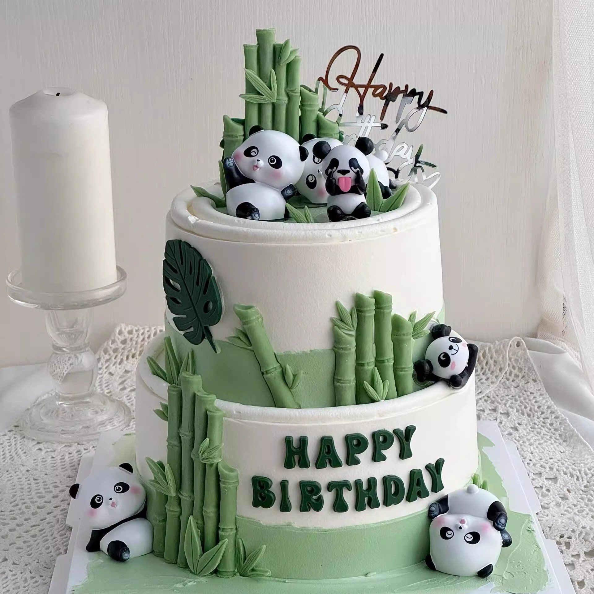 飾卡通搪膠可愛熊貓擺件富貴竹子硅膠模具烘焙插件 網紅熊貓蛋糕裝由
