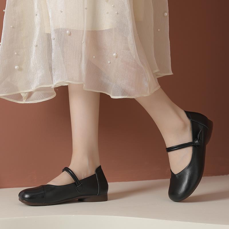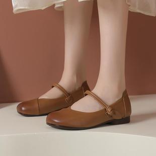 休閑鞋 真皮白色單鞋 子 巨好看軟底芭蕾淺口小皮鞋 新款 女款 2025秋季