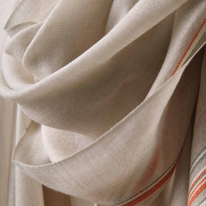 25春夏精薄外搭兩用女士圍巾簡約散須條紋純羊絨大披肩 APCSHOP由