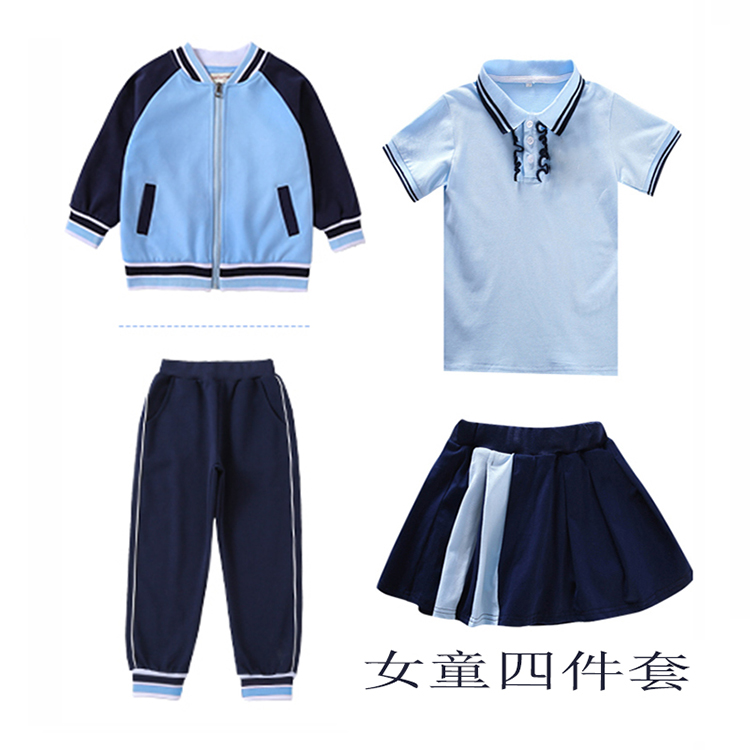 幼兒園園服春秋款 校服一年級(jí)小學(xué)生班服純棉運(yùn)動(dòng)服 四件套藍(lán)色短袖由
