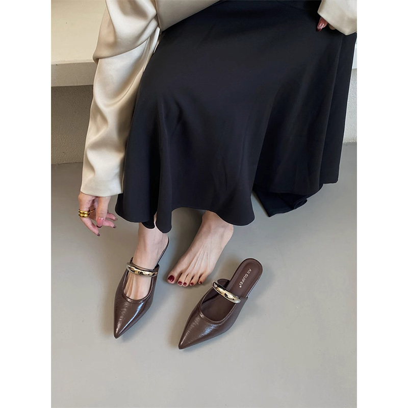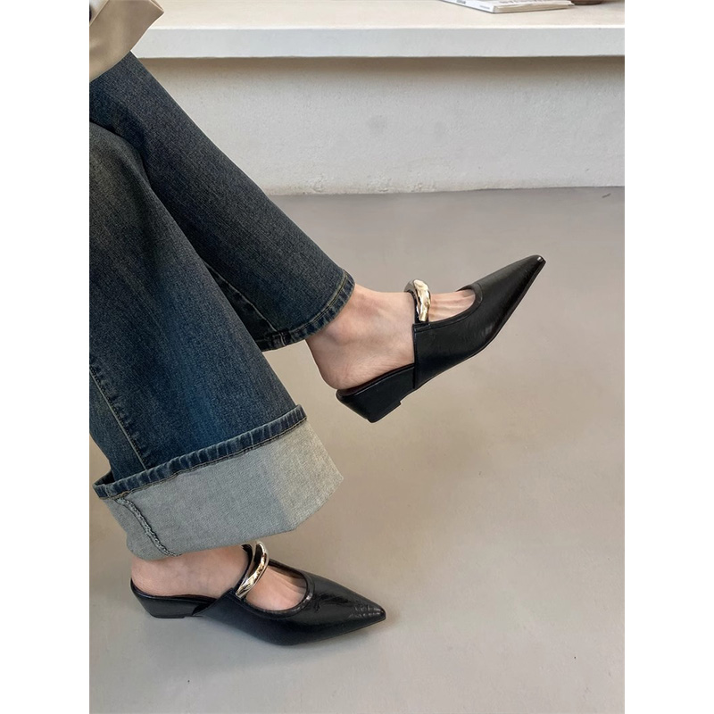 春夏絕美瑪麗珍穆勒單鞋 女外穿2025新款 內增高坡跟尖頭包頭半拖鞋由