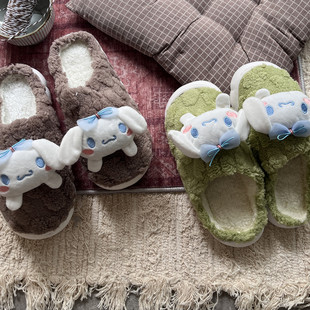 防滑保暖毛毛絨加厚保暖月子鞋 女冬2024新款 創(chuàng)意卡通玉桂狗棉拖鞋由