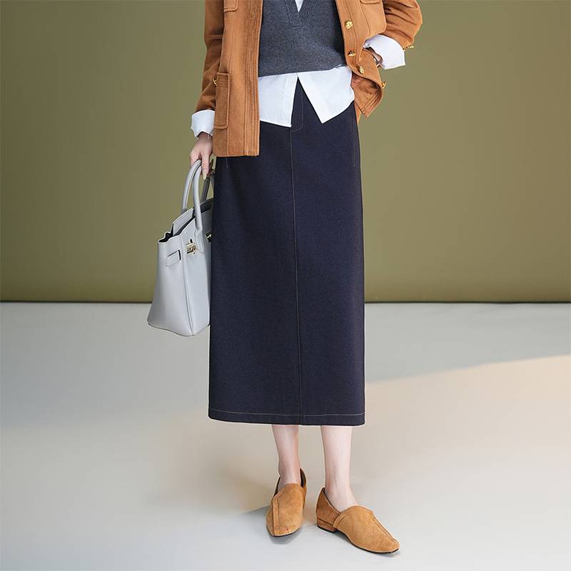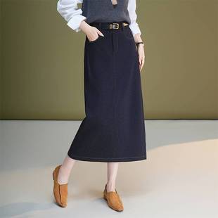 高腰顯瘦開叉中長款 直筒一步包臀牛 秋季 品牌牛仔半身裙女2025新款由