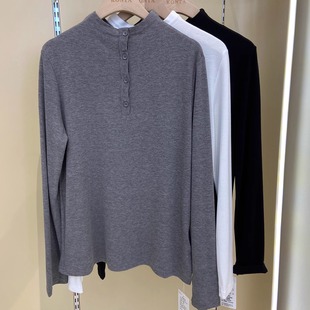 女士正肩中領T恤秋衣打底衫 半開扣子上衣 薄款 紫曼藤6954秋冬新款由