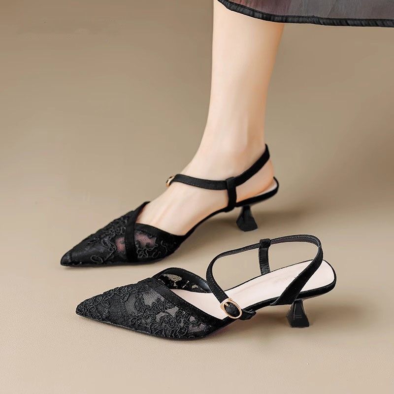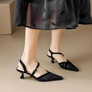 包頭網紗涼鞋 新款 百搭法式 氣質中跟尖頭配裙子 女2025年夏季由