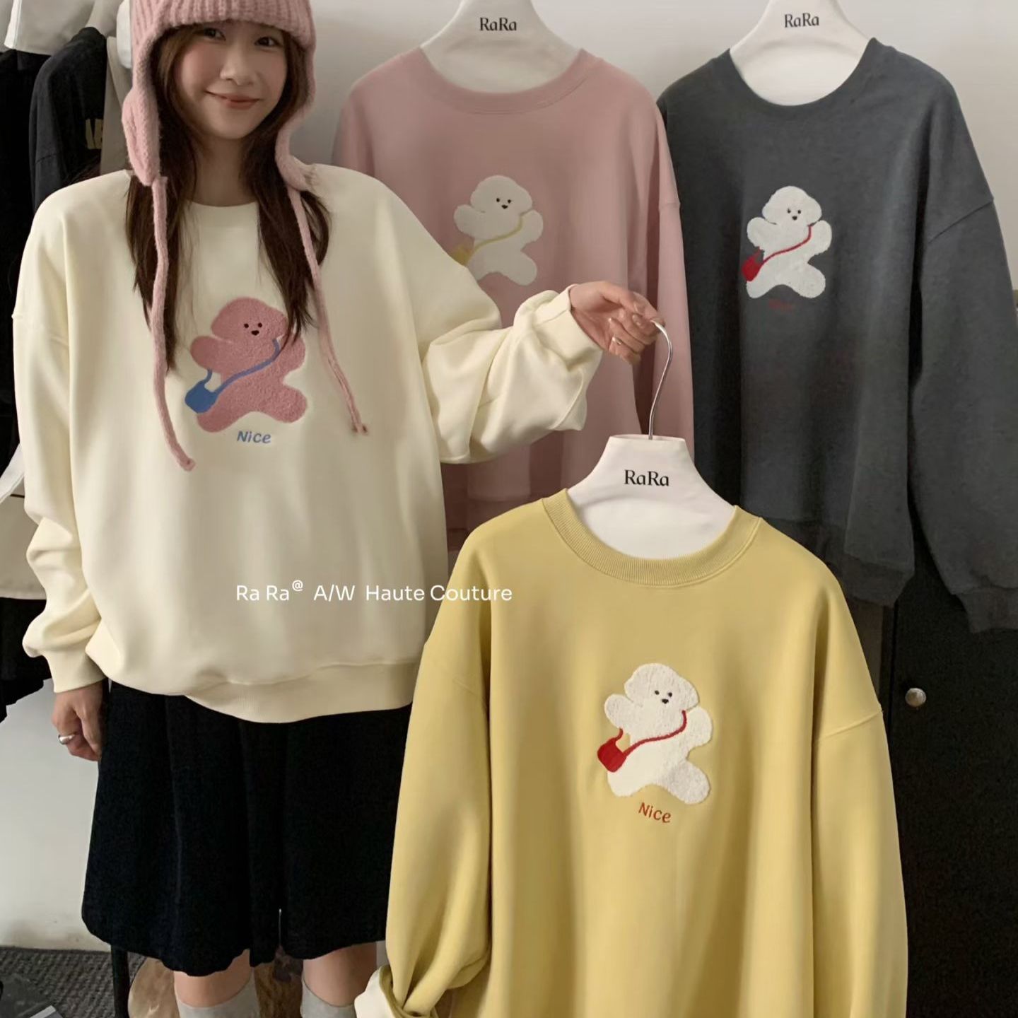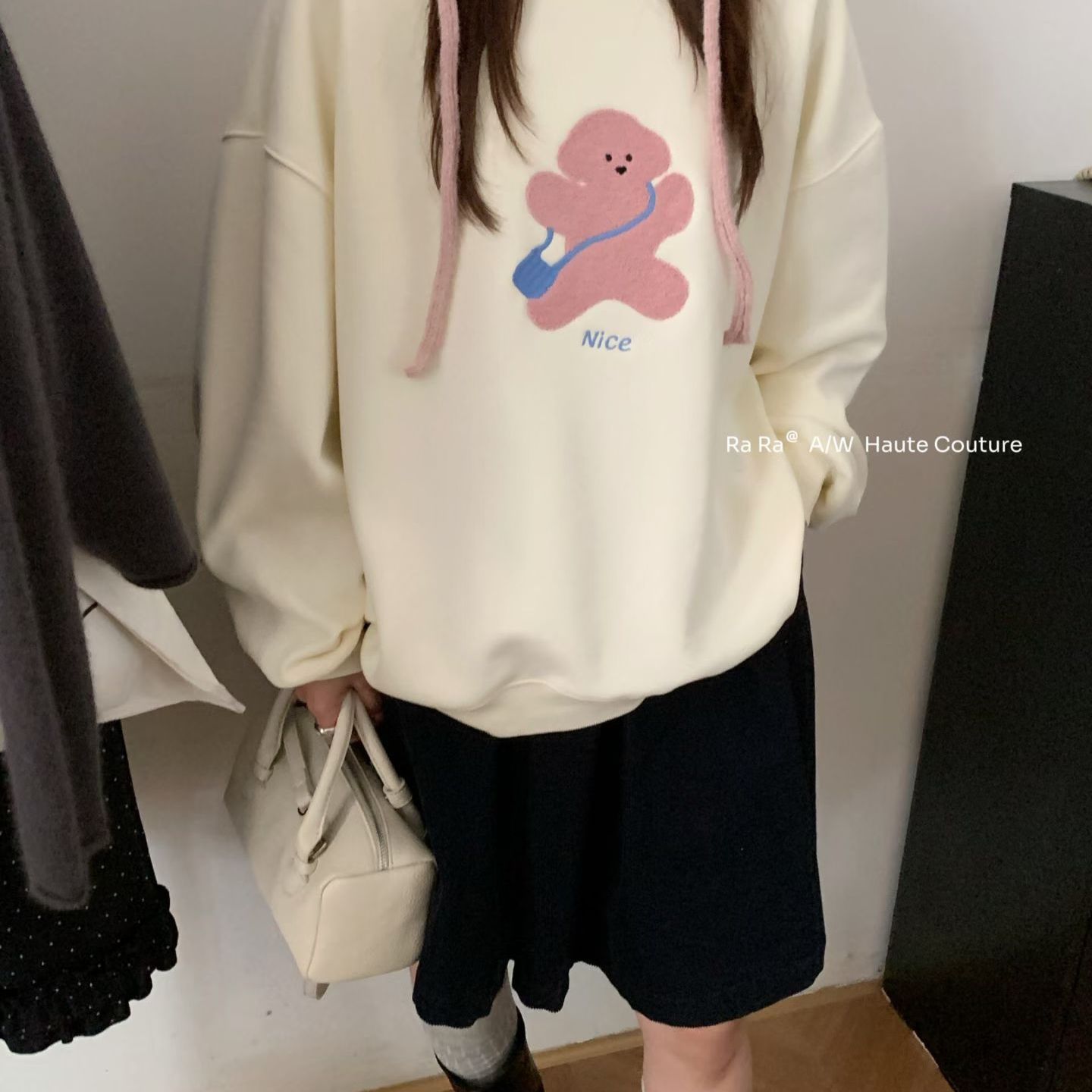 通勤圓領(lǐng)加絨套頭寬松卡通圖案長袖 上衣洋氣衛(wèi)衣女 Style韓版 RaRa由