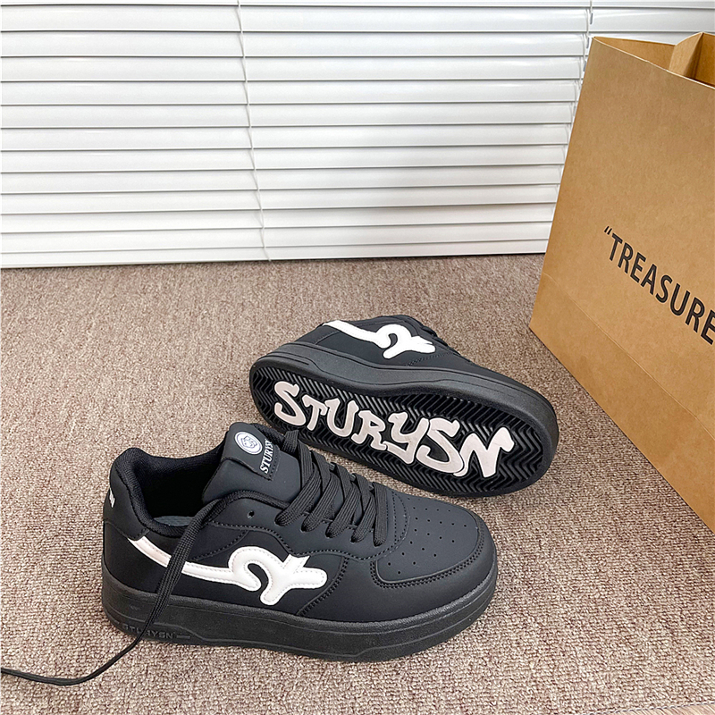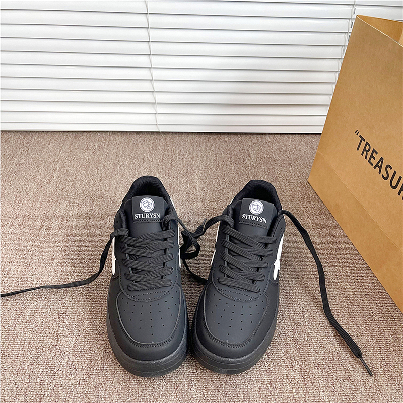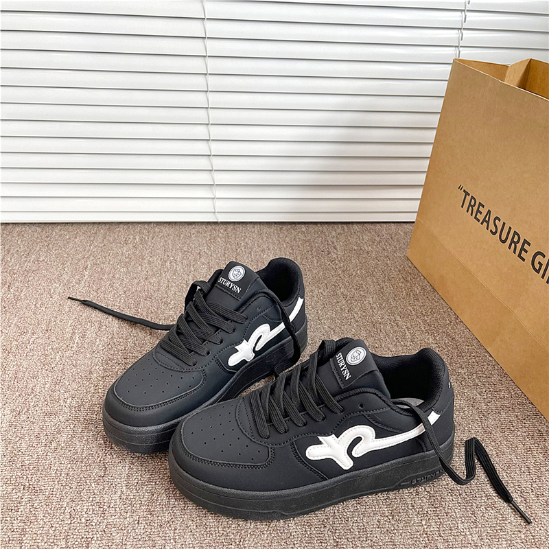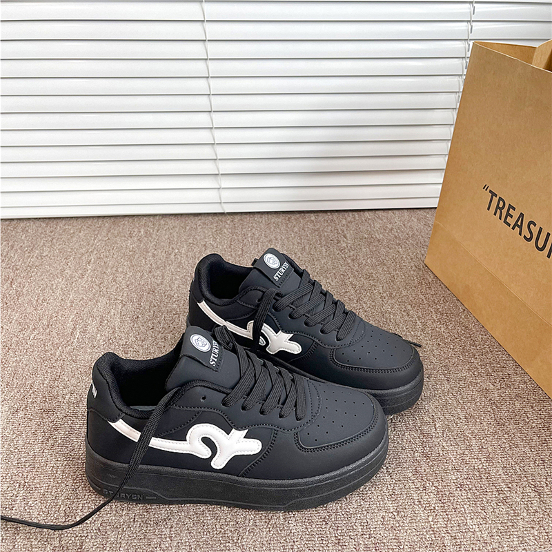 新款 易少年 黑色厚底板鞋 女ins潮2025秋季 港風學生百搭休閑小白鞋由