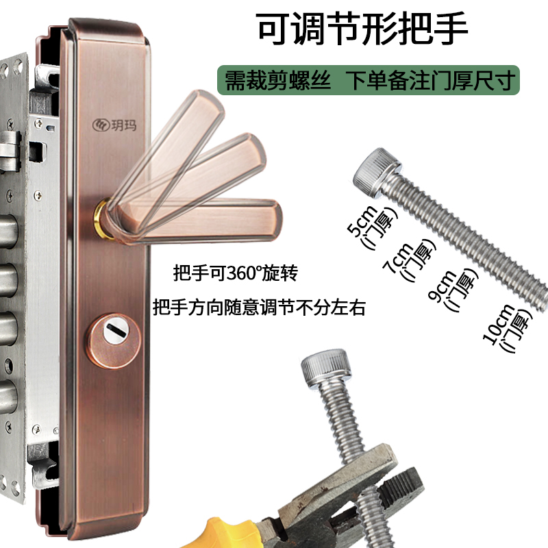 玥瑪不銹鋼防盜門鎖執手鎖家用大門鎖門把手通用型超C級鎖芯套裝由