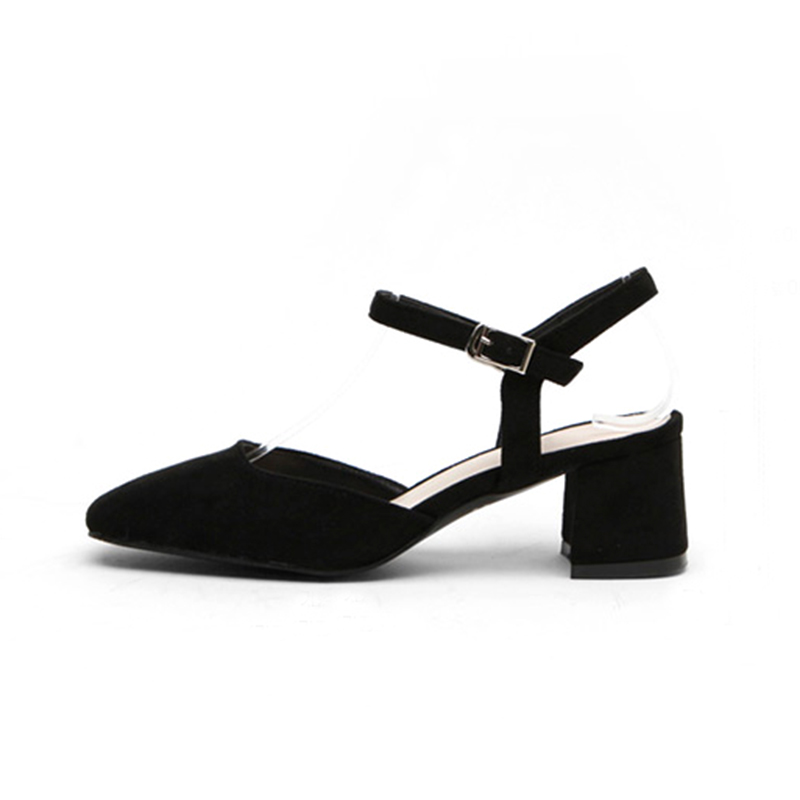 黑色高跟鞋 粗跟涼鞋 一字扣法式 百搭中空包頭單鞋 女2025年新款 夏季由