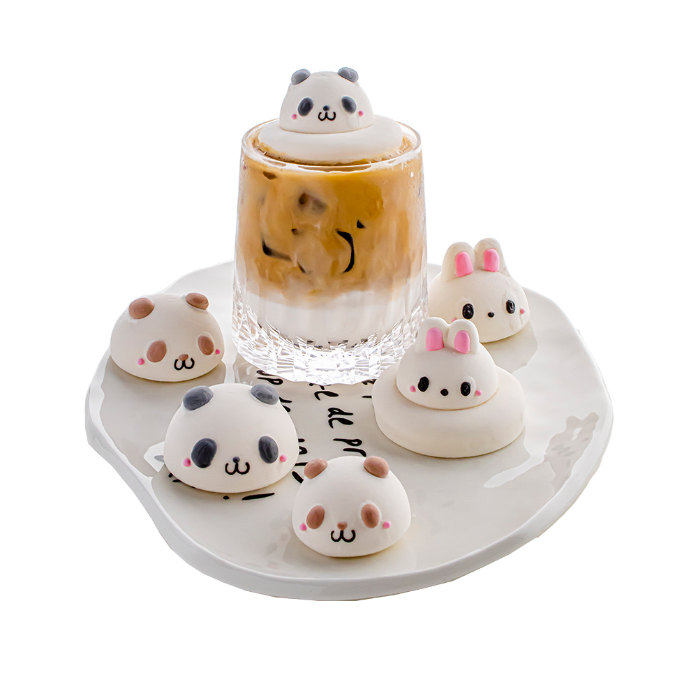 飾 晴心田小糖原創熊貓兔兔子卡通造型棉花糖咖啡飲品伴侶蛋糕裝由