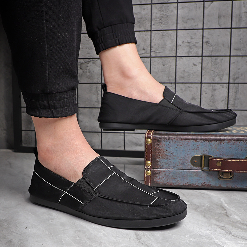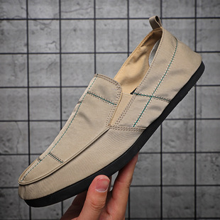 輕便百搭透氣一腳蹬套腳純色休閑鞋 2023男士 新款 帆布鞋 潮流男 韓版由