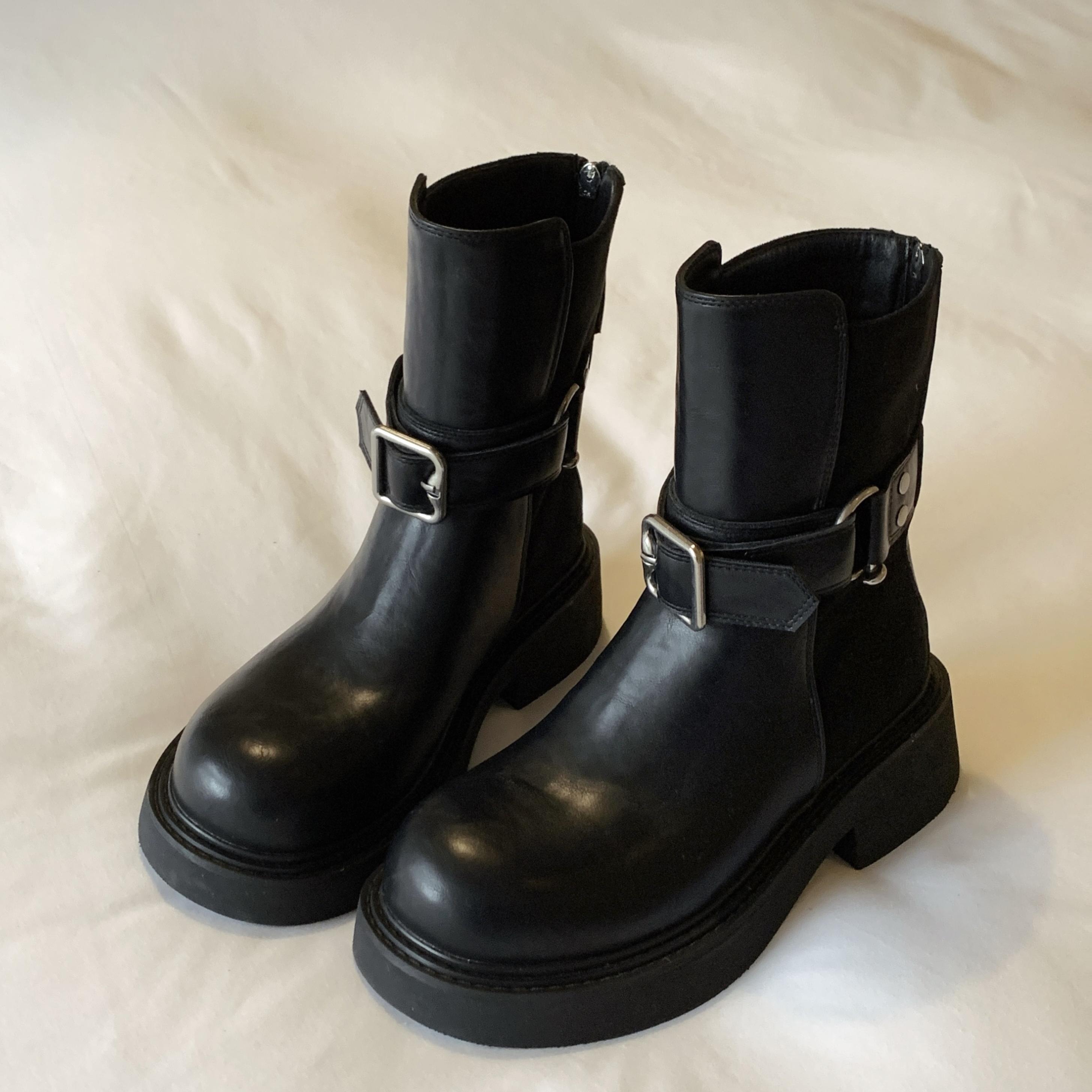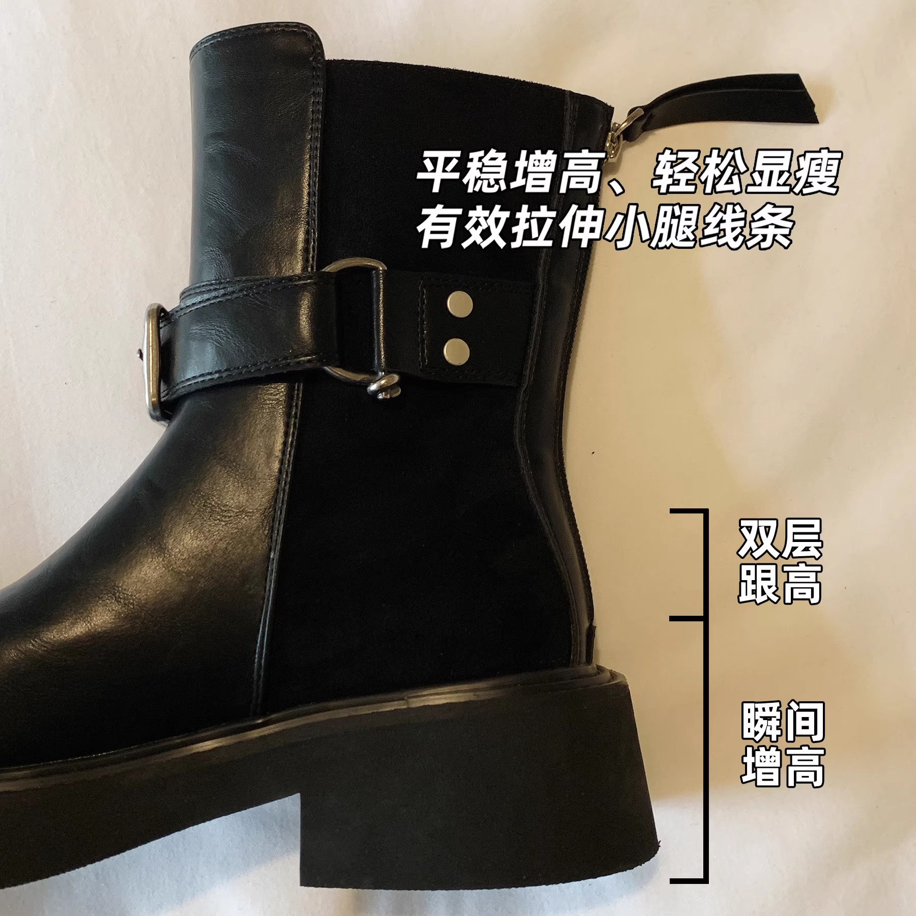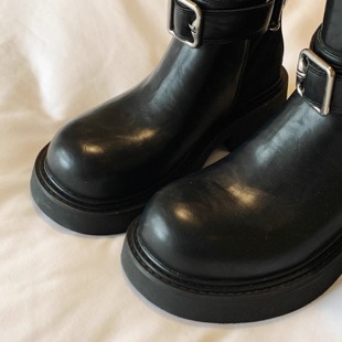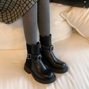 黑色百搭短筒靴子時裝 靴機車靴 新款 熱風厚底騎士靴女2025年冬季