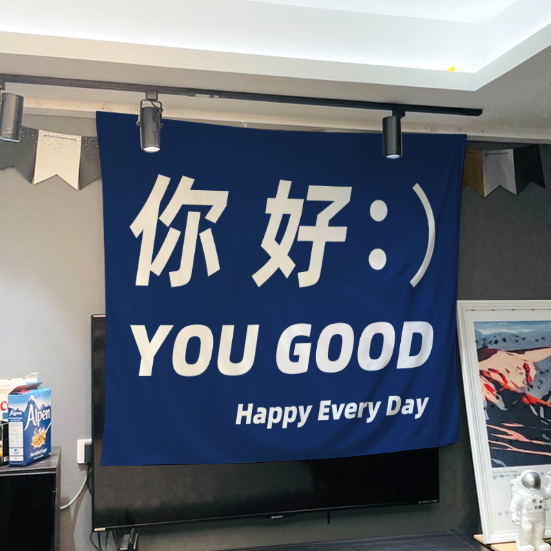 飾墻布店面臥室改造背景布定制 禁止熬夜網紅文字語錄掛布創意裝由