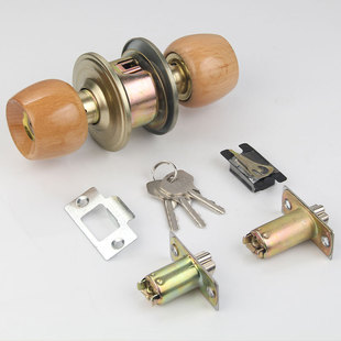 櫸木球鎖球形門鎖圓鎖房門鎖室內球型門鎖球形鎖帶鑰匙純銅園鎖具由