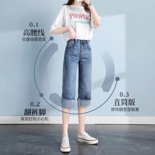 淺藍小個子高腰窄版 七分闊腿牛仔褲 女夏薄款 2025年新款 直筒短褲由