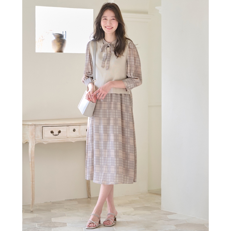 SiS2SET甜美針織背心格紋長(zhǎng)裙兩件套女士2023年米色日系輕奢 any由