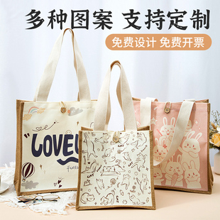 麻布手提袋定制國潮風亞麻環保購物飯盒包帆布棉麻袋子黃麻禮品袋