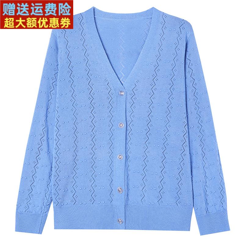 鏤空外搭中老年女寬松大碼 防曬衣桑蠶絲外套 冰絲針織開衫 媽媽夏裝由