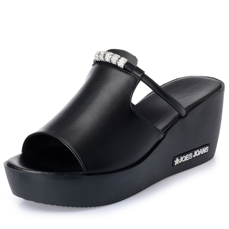 春夏季 坡跟厚底拖鞋 女內(nèi)增高網(wǎng)紗魚嘴一字拖高跟松糕涼鞋 新款由