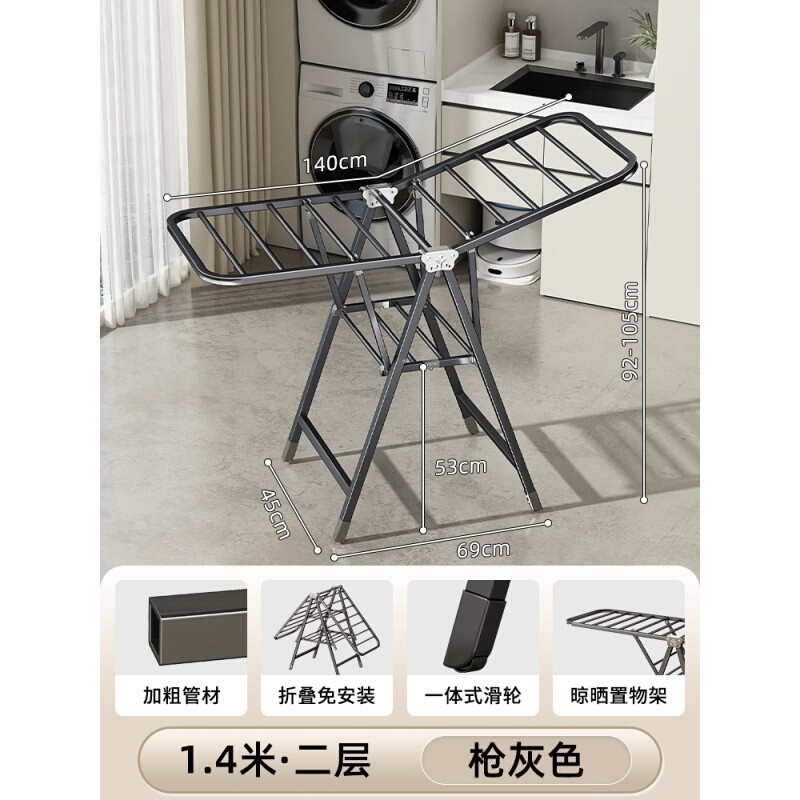室內戶外防風涼衣桿簡易曬被子 優勤折疊晾衣架陽臺家用落地式由