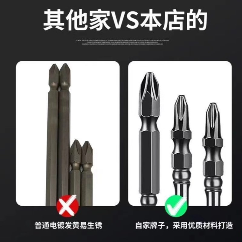 十字批頭電動(dòng)螺絲刀手電鉆細(xì)頭S2加長(zhǎng)電批披風(fēng)高硬度六角強(qiáng)磁套裝