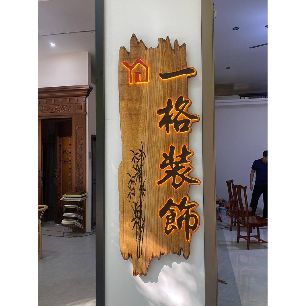 飾掛牌木牌雕刻發光招牌仿古木雕做舊茶室門頭 實木牌匾浮雕裝由