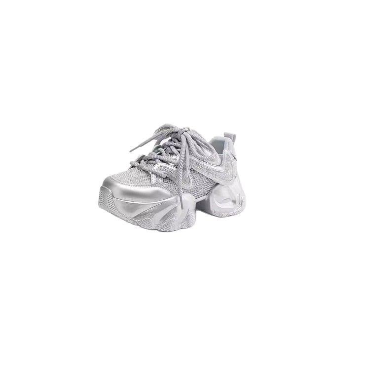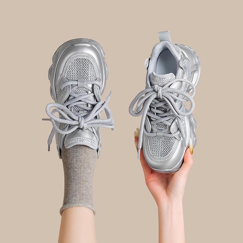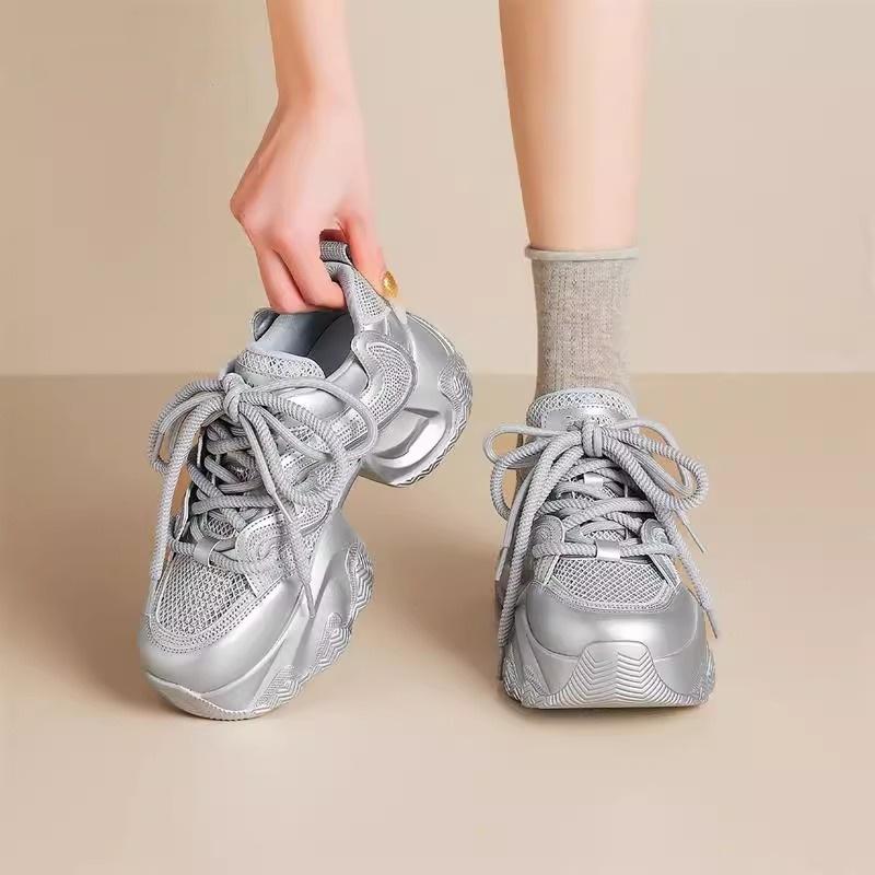 瑪速主義2025新款 女秋輕便運動鞋 休閑跑步鞋 ins潮厚底銀色老爹鞋