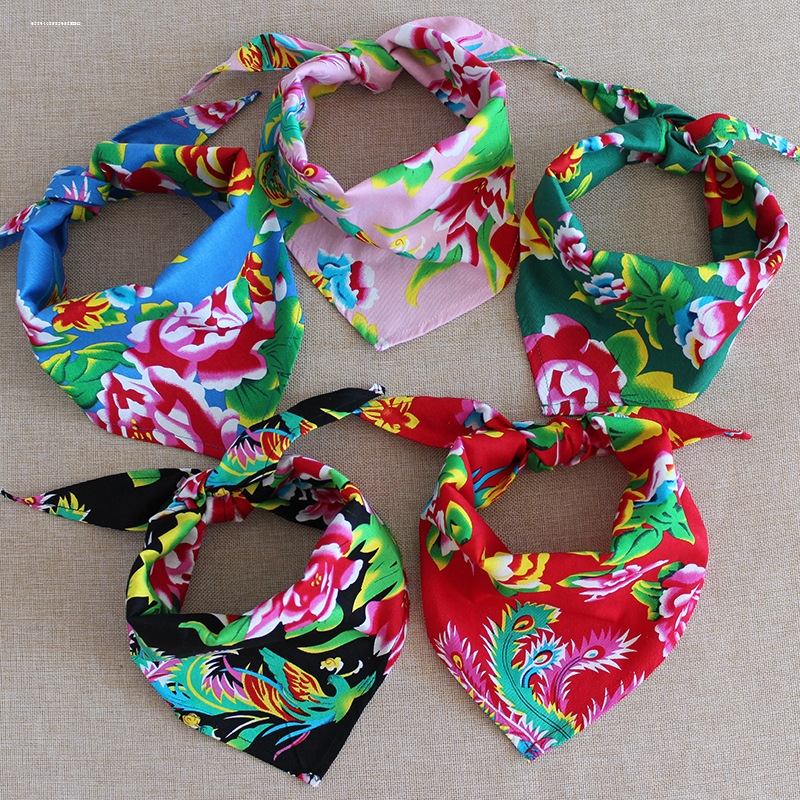 新款 國風 嘻哈風包頭方巾冬季 東北大花布頭巾兒童女民族風圍巾時尚由