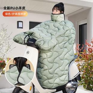 電動車擋風被新款 防水防風電瓶摩托車PU小羊皮擋風罩 加絨加厚冬季由