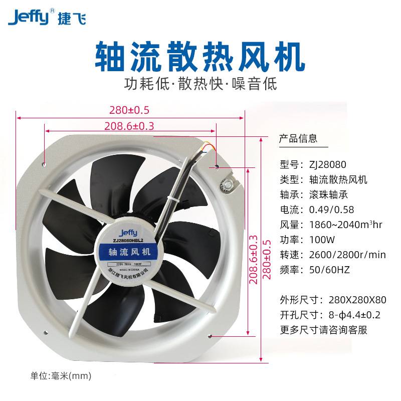 廂式 28080HBL 捷飛250FZY6 S軸流風(fēng)機220v 廠家直供 機柜散熱風(fēng)機由