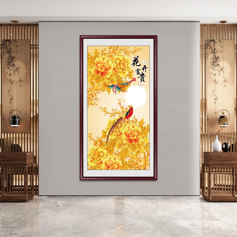 C飾畫花開富貴吉祥招財水墨畫豎 玄關掛畫牡丹國畫入戶走廊過道裝由