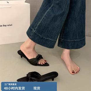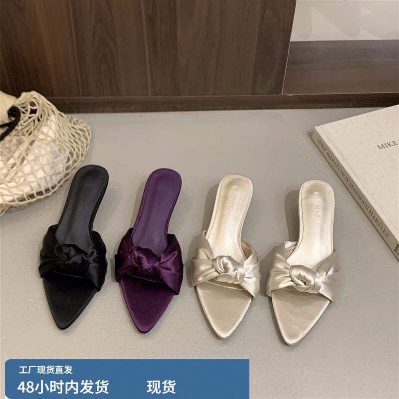 氣質緞面尖頭高跟涼鞋 法式 夏季 子外穿2025新款 小貓跟涼拖鞋 仙女鞋由