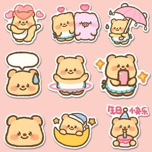 飾手機手賬平板防水貼畫 100張像素黃油卡通小熊ins貼紙可愛表情裝由