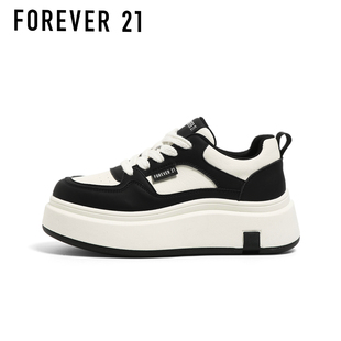 F21厚底增高5.5cm小白鞋 秋季 百搭休閑不累腳松糕黑白熊貓板鞋 女款由