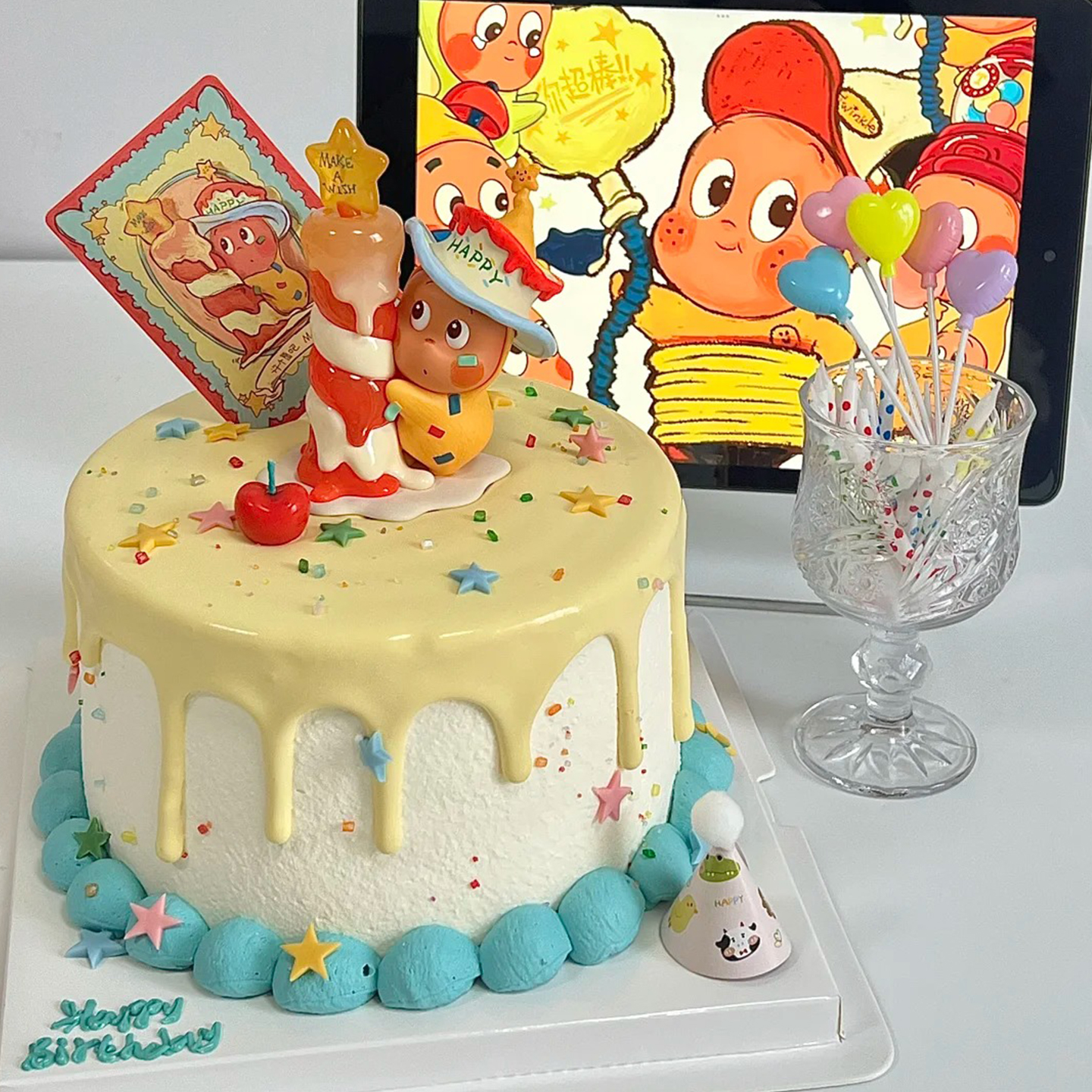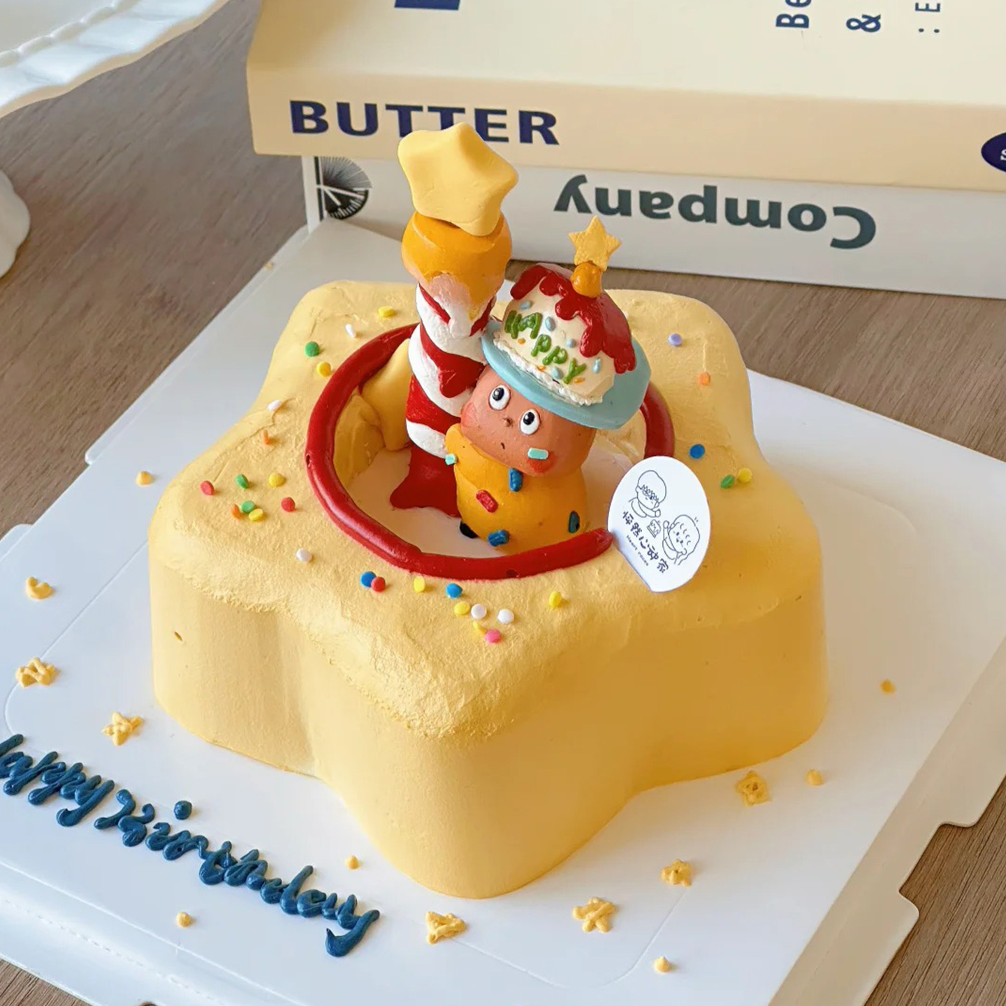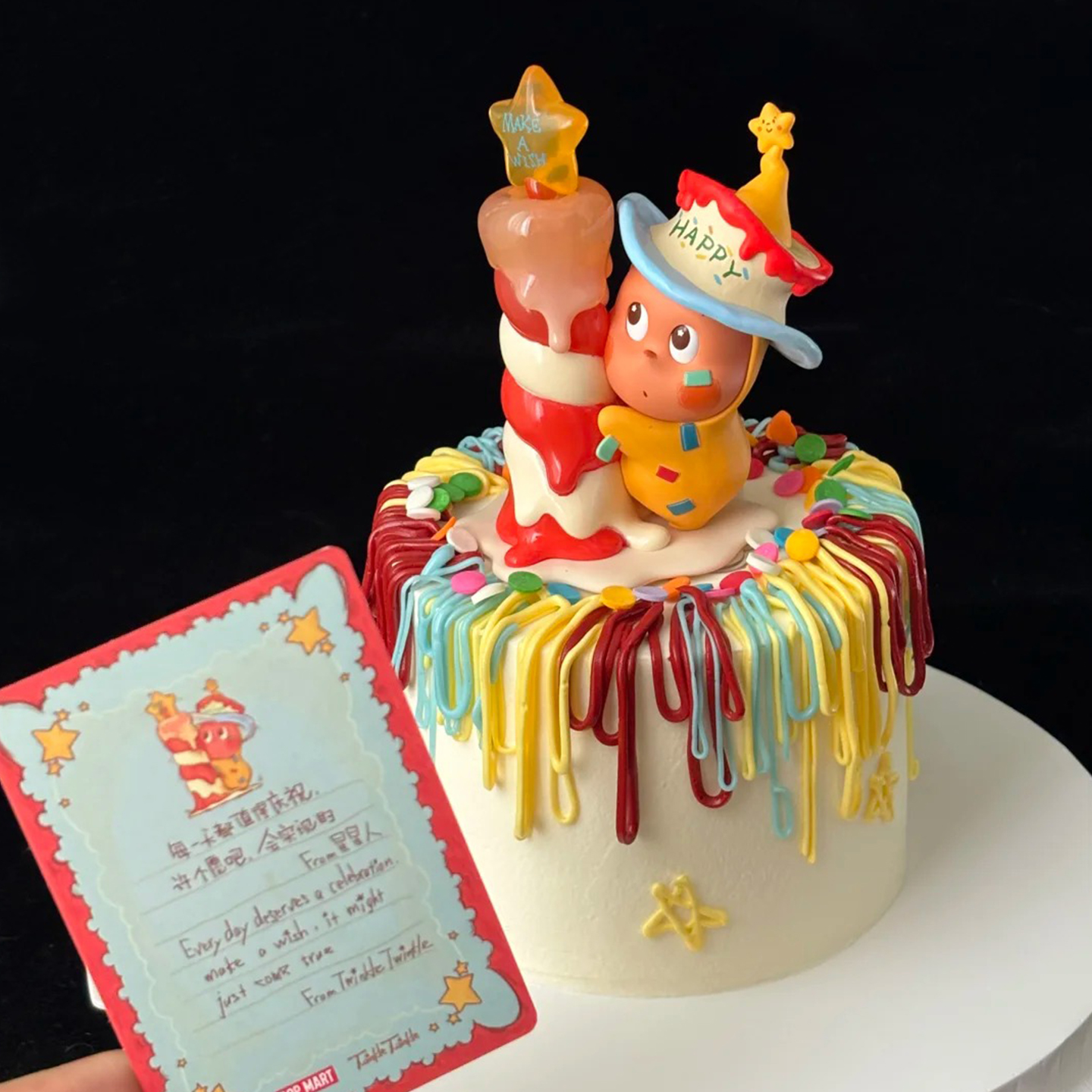 新款 飾擺件許愿蠟燭兒童男孩女孩生日甜品臺原創插件 星星人蛋糕裝由