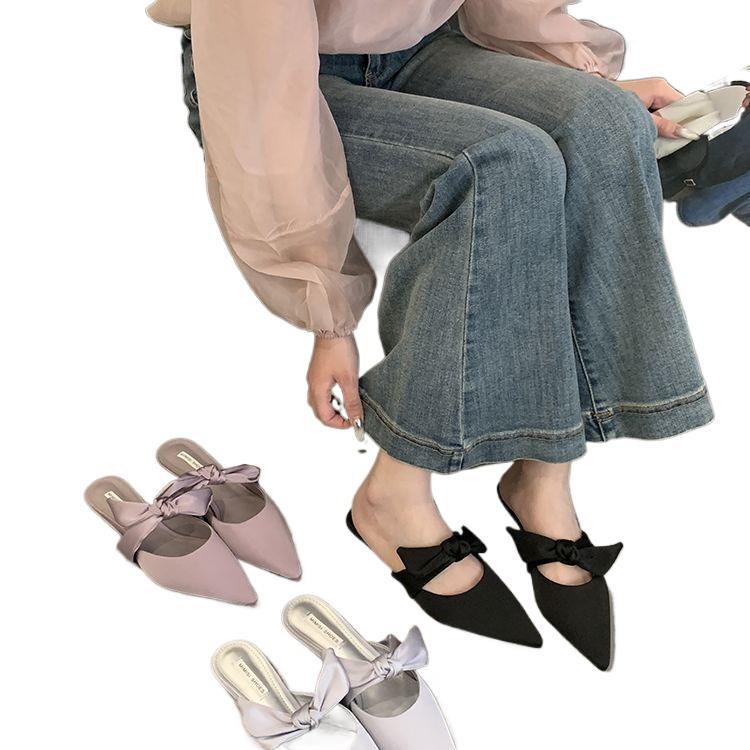 買手店韓版 矮跟尖頭半拖鞋 女外穿春夏2025年包頭涼拖鞋 高跟 明星款由