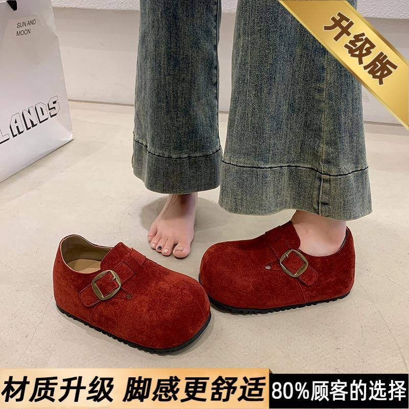 ZFWU東碩全包真皮勃肯鞋 舒適平底單鞋 休閑復古軟木鞋 女 女2025新款